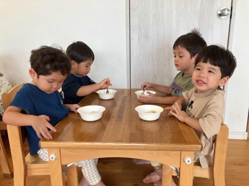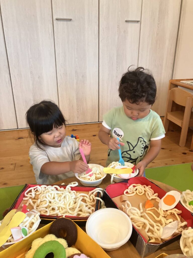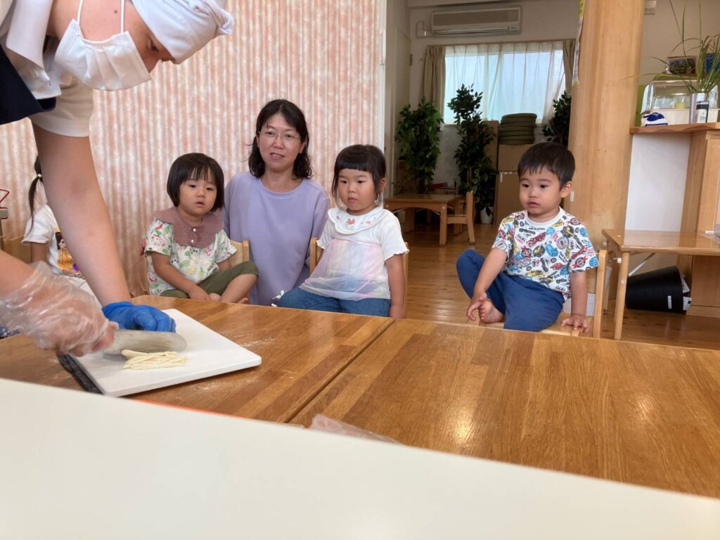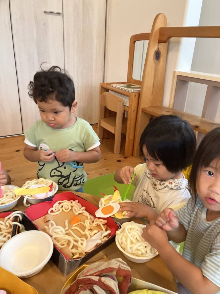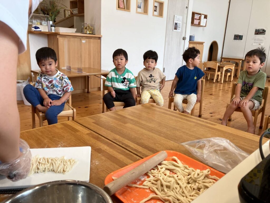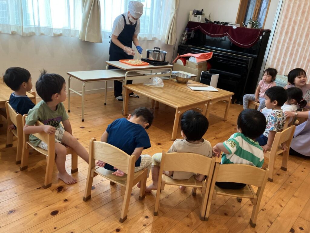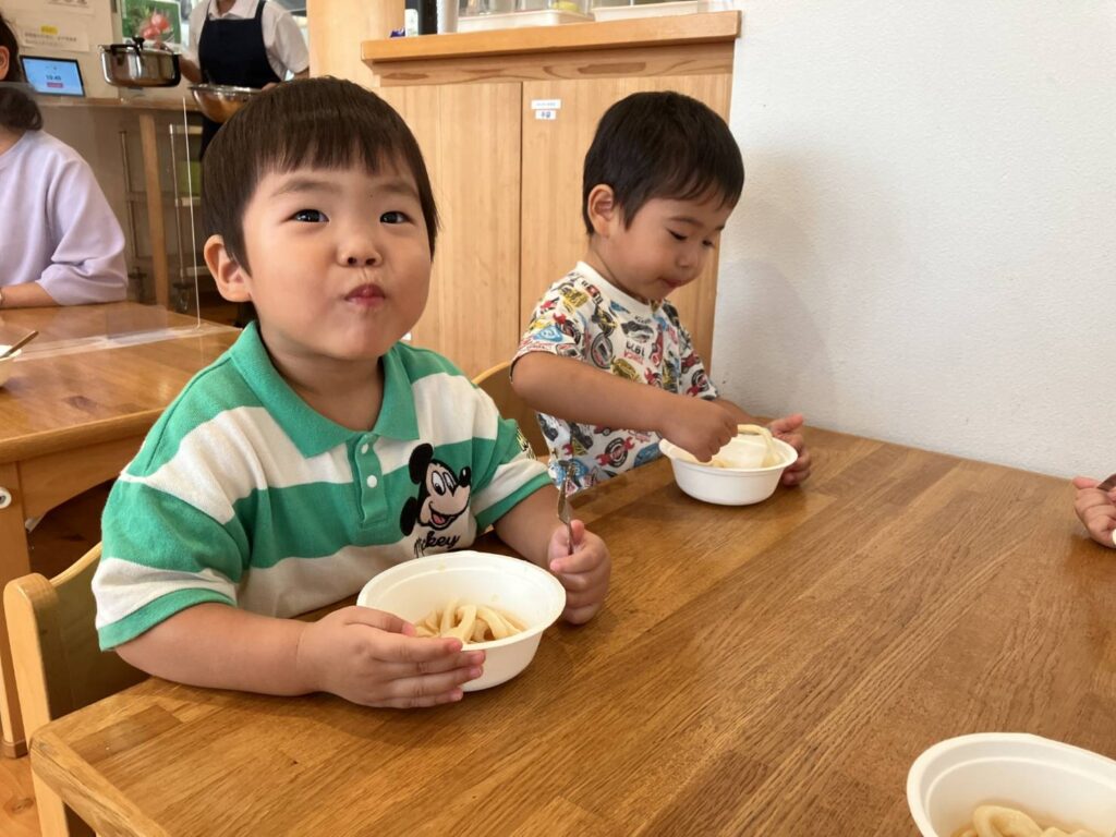 2歳児クラスの子ども達はうどんが大好きです。