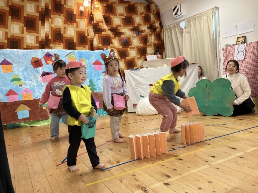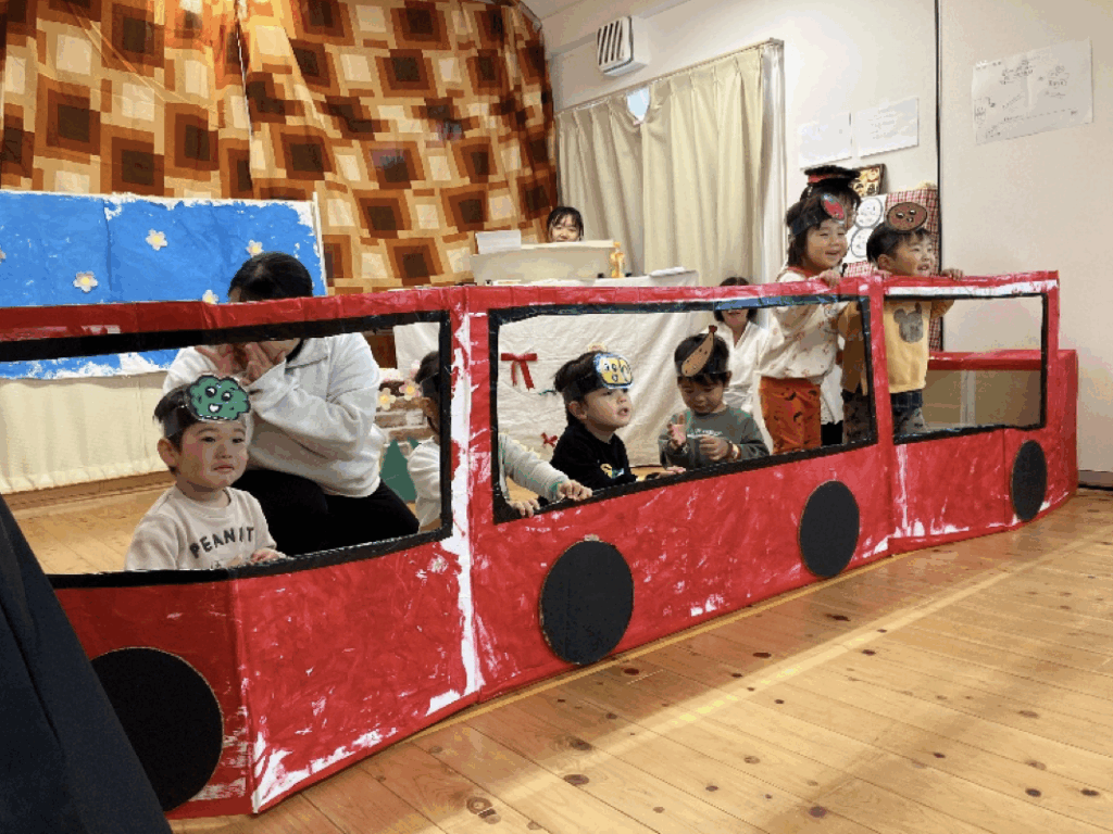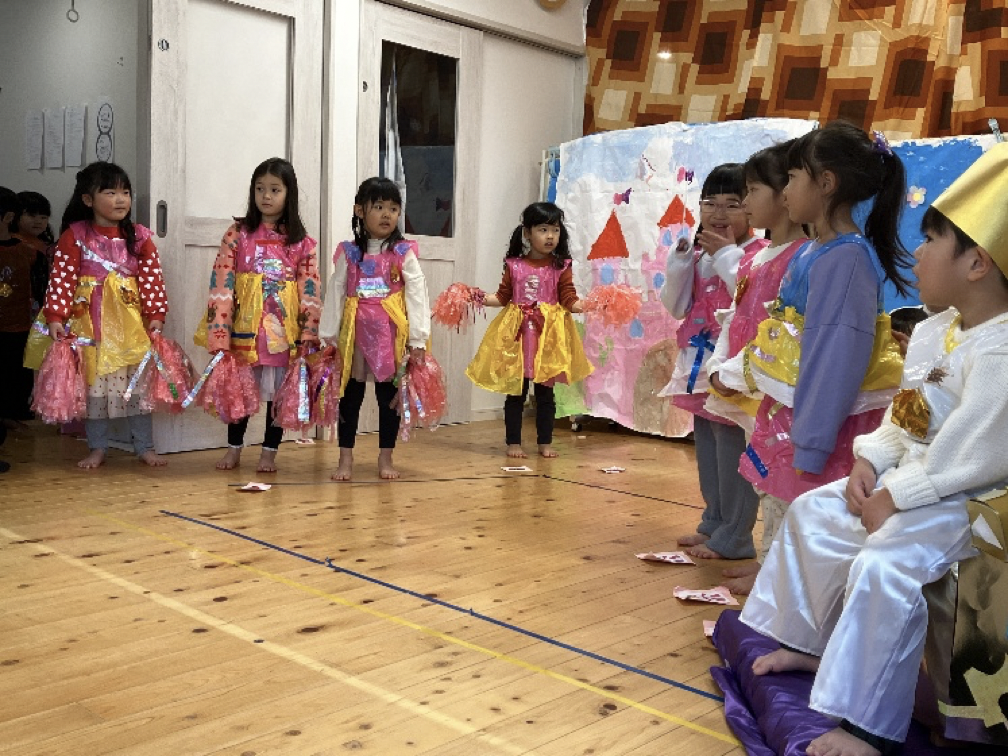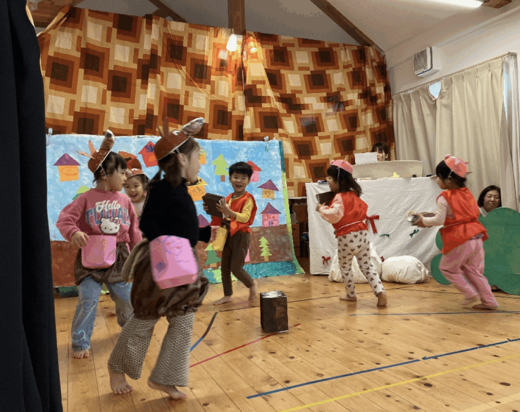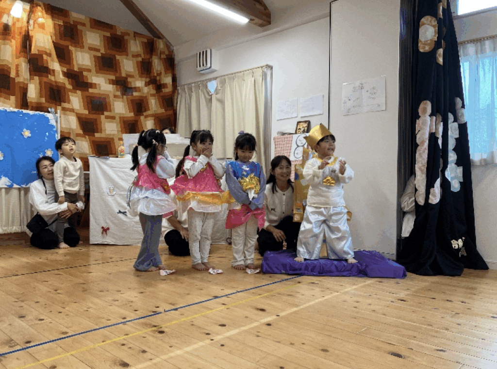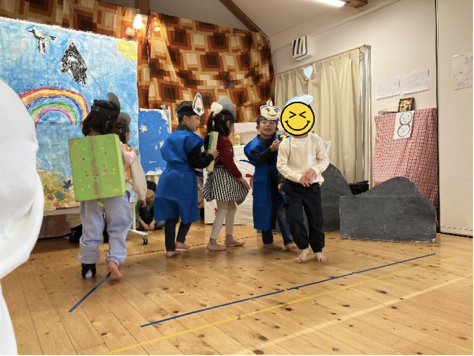 セリフはもちろん、衣装、背景、大道具、小道具も子ども達で考えて